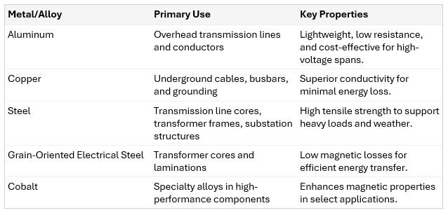 Metals Used in Electric Grid Infrastructure