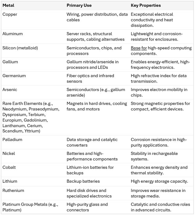Metals Used in AI Data Centers