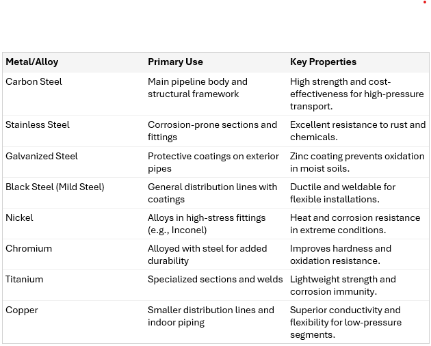 Metals Used in Natural Gas Pipelines